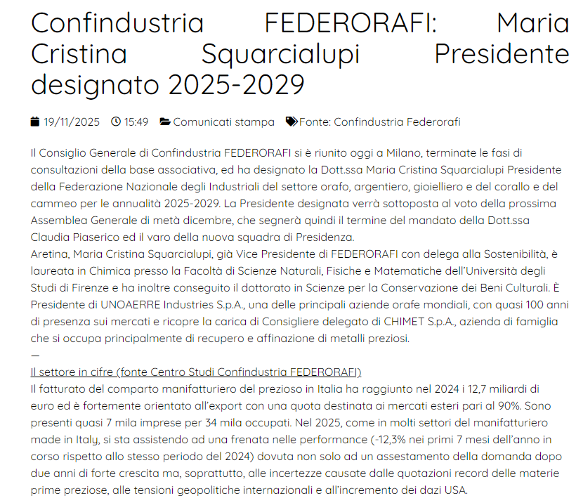 Confindustria FEDERORAFI: Maria Cristina Squarcialupi Presidente designato 2025-2029